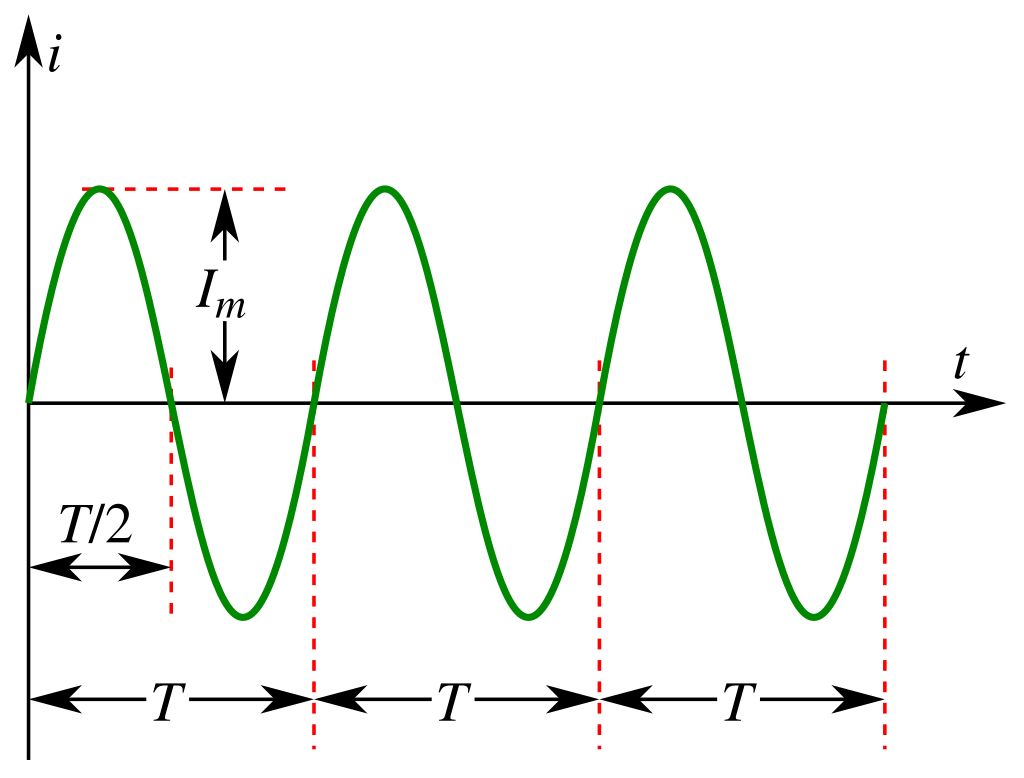Змінний струм був винайдений пізніше, з відкриттям Майклом Фарадеєм явища електромагнітної індукції. В ньому немає чітких полюсів, так як він генерується обертанням мідної котушки між двома магнітами. Так як магніти протилежно заряджені, то і в провіднику генеруються протилежні полюси. Відповідно зі швидкістю обертання ротора генератора(зазвичай 50 Гц) на електростанції(або бензогенераторі) змінюється і полярність. На графіку це виглядає як хвилеподібна зміна полюсів на протилежні, тобто сиунсоїда.